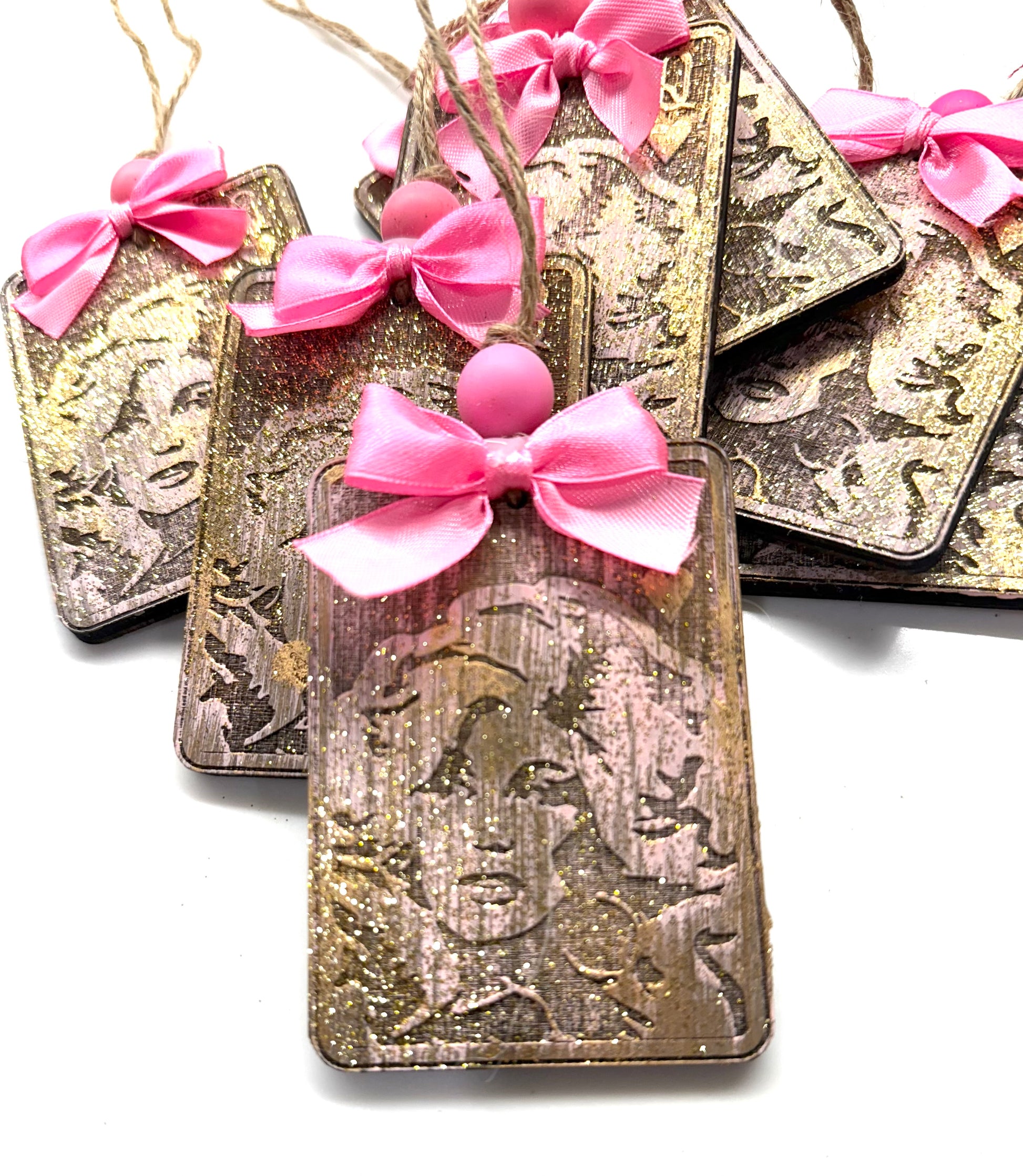 Bring a little sparkle and sass to your Christmas tree with this Dolly-inspired ornament! Each piece is laser-cut and hand-finished with a glittery gold sheen, topped with a pink wooden bead and matching bow for that perfect touch of country glam. Whether you’re gifting it to a fellow Dolly fan or adding some personality to your own holiday décor, this ornament is sure to shine bright all season long.